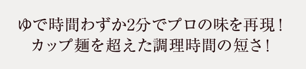 お腹を空かした方が1秒でも早くお腹を満たしてほしいとの想いから、カップ麺と同程度のゆで時間(2分)で本格海老味噌ラーメンを実現!