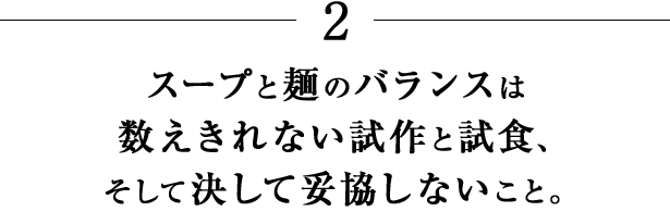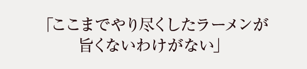 - 全国のラーメンを食べ歩き、自分自身が納得する麺とスープを作りたかった