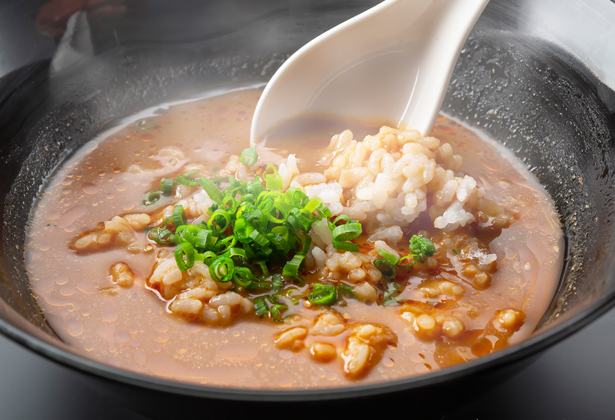 すべて飲み干したくなるスープですが、たまには少し残して温かいご飯とネギを入れて「えび味噌おじや」もたまりません。罪悪感と中毒性がせめぎ合うおいしさです。