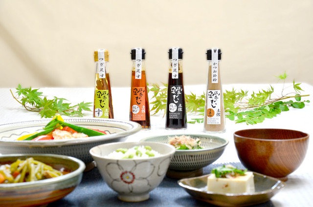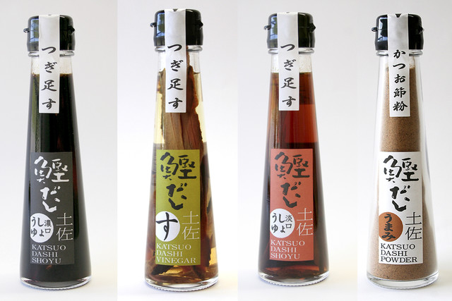 つぎ足す鰹だしは、国産かつお節と高知県土佐清水産そうだかつお節を使用し、 絶妙なブレンドでそれぞれのいいところを引き出し、特別な醤油とお酢を入れた、土佐の鰹だしの味と香の利いた、だし酢・だし醤油です。