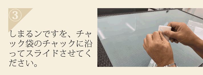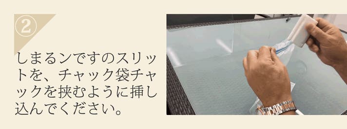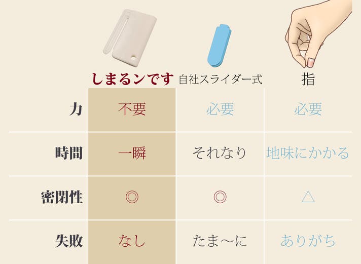 - これまでの負担を軽減!おどろくほどチャック袋がかんたん・確実にしまるンです!