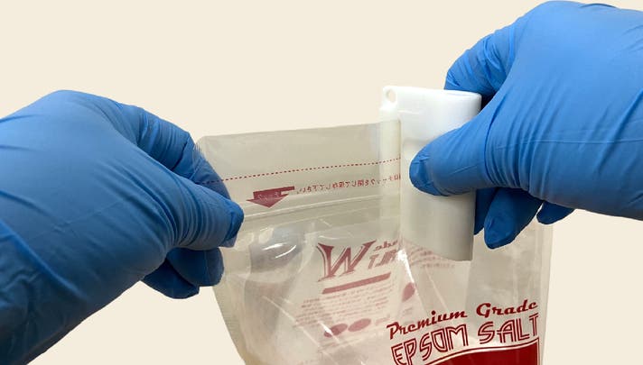 当社では、水素入浴剤やエプソムソルトをはじめとした入浴剤を手掛けており、繁忙期には1日1,000袋以上もの「チャック袋」への充填作業を行っています。