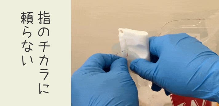 袋の端をつまんでプチッ