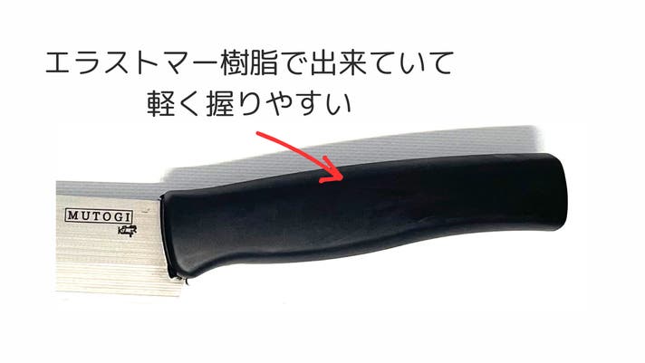 包丁の柄の部分は金型製作技術を使い、清潔なエラストマーハンドルを使用し、手にやさしいハンドルとしました。