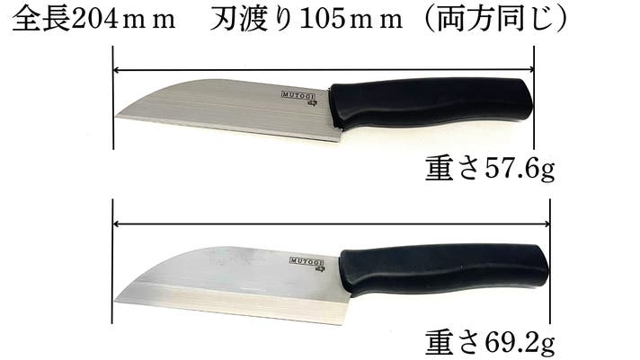 どちらも全長は同じ大きさですが、重さ、刃の大きさは異なります。