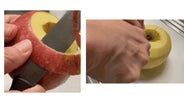 ・超硬合金は硬いため、刃先で食材をこじ開けたり、力を横方向にかけると刃が欠ける恐れがあります。必ず切断用に使用してください。