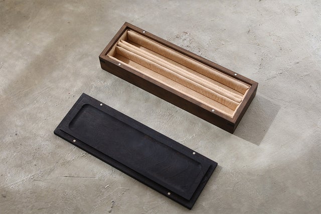 本体は、鉄染のチェリー。蓋は鉄染のウォルナットで出来ています。