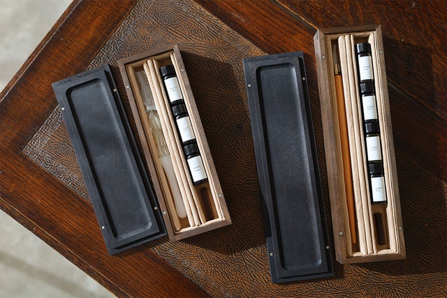 - 使うシーンををしっかりと考えて、小さなインク瓶も収納可。さらに蓋の裏がペントレーにも!