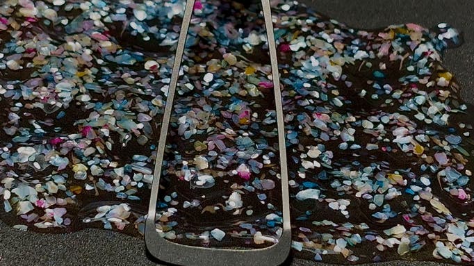 0.2mmの金属球が叩き出す、強固に鍛え上げた金属層。 SHINARIの独特なマットな質感は、単なる砂うち加工ではありません。 0.2mm以下の微細な粒子を高速でβチタン表面に打ち付ける「ショットブラスト加工」によるものです。