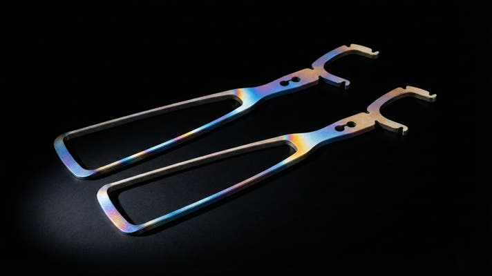 チタンが炎に反応して見せる、神秘的な多彩なグラデーション。 手作業ゆえに二つとして同じ色はありません。