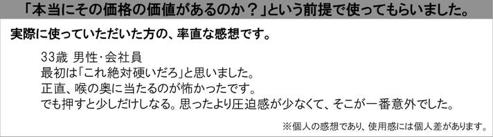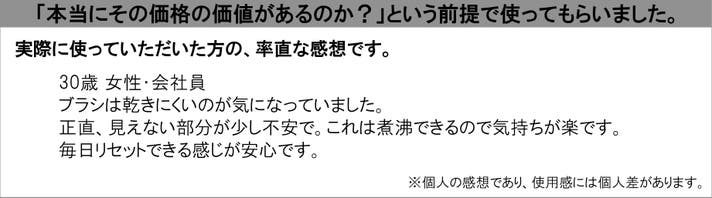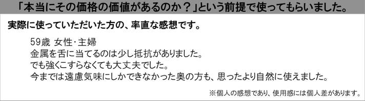 【実行者コメント】「奥まで入れた時の『抵抗感のなさ』に正直驚きました。」過去に試した舌クリーナーよりスムーズでスッキリした体験は初めてです。「βチタンのエッジ」が汚れを捉える感覚は手放せなくなります。(実行者・杉本)