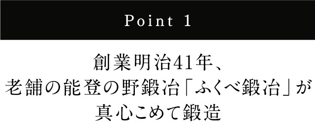 創業明治41年、100年以上に渡り能登の地で野鍛冶を生業としている“ふくべ鍛冶”が精魂込めて鍛造。