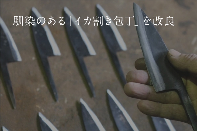 【SHINBU】の基となった「イカ割き包丁」も、日本有数のイカの漁獲量を誇る能登の漁師がイカを素早く捌くため様々な工夫が凝らされています。
