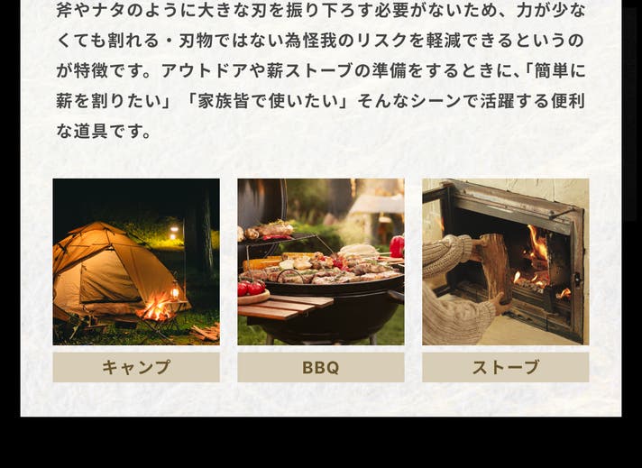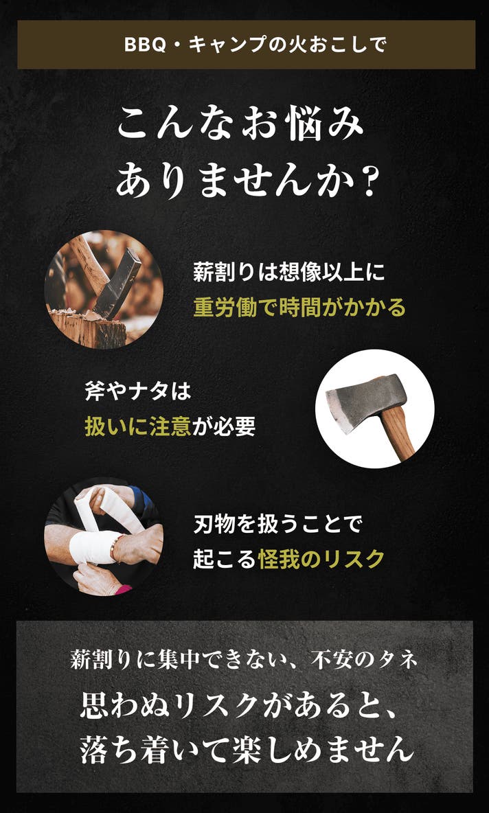 「薪割りは危険そう」「自分には無理」と感じている人にも、焚き火の楽しみを広げたい。