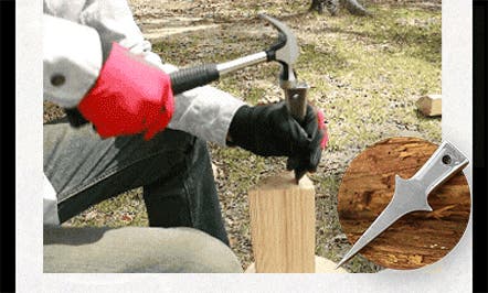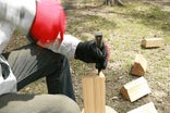 ハンマーで軽く叩くだけで薪にすっと食い込みます。