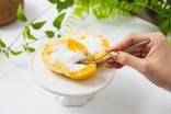 表面の果実とクリームを一緒に食べれば、ゴールドバレルパイン独特の甘みををよりいっそう感じることができるでしょう。