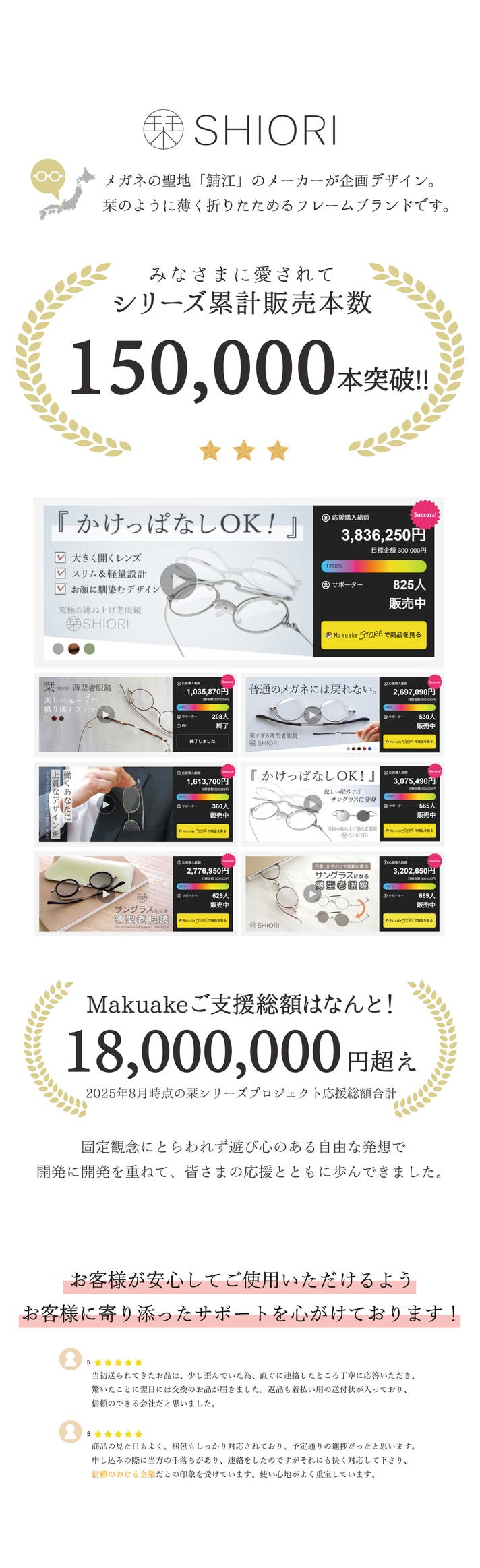 「Makuake(マクアケ)」は、実行者の想いを応援購入によって実現するアタラシイものやサービスのプラットフォームです。このページは、 プロダクトカテゴリの 「【鯖江発】天然木が優しく肌に馴染む。掛け心地も持ち歩きも軽やかな薄型老眼鏡「栞」」プロジェクト詳細ページです。