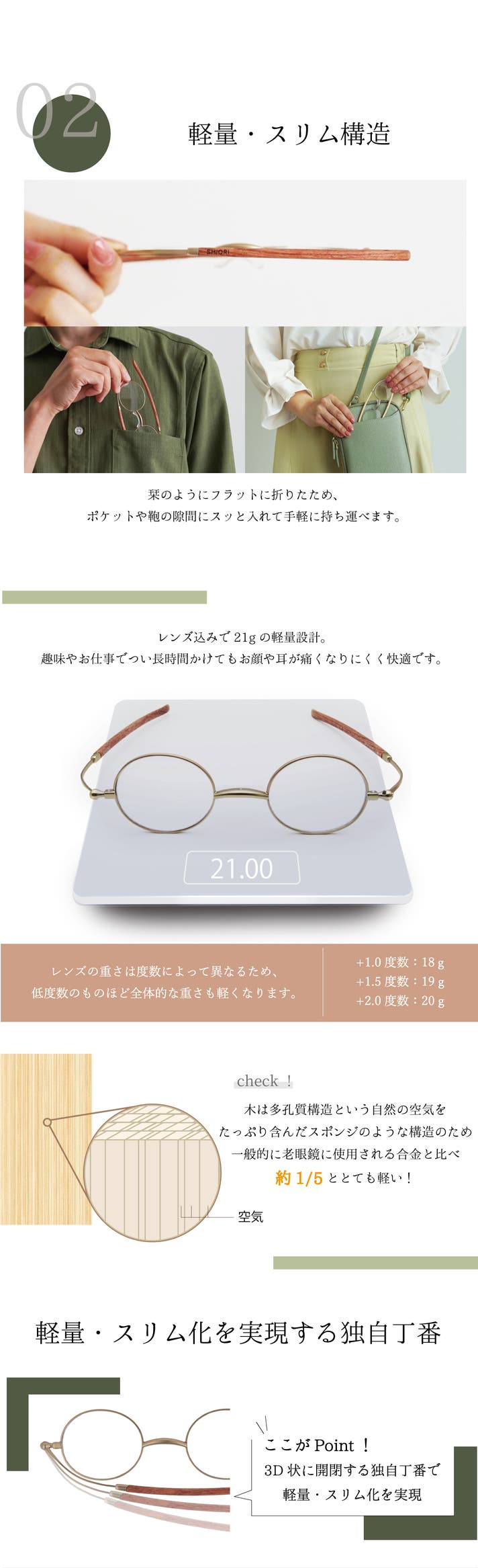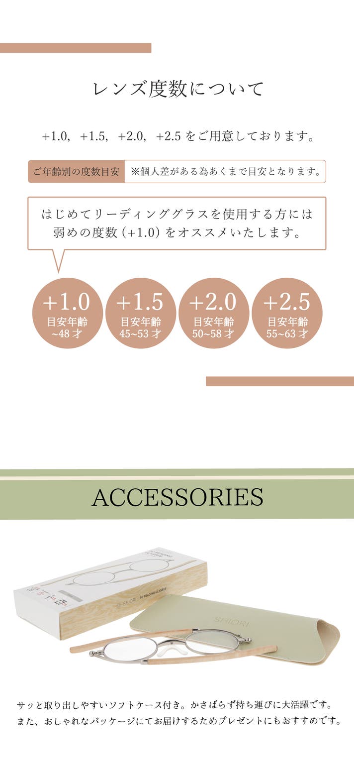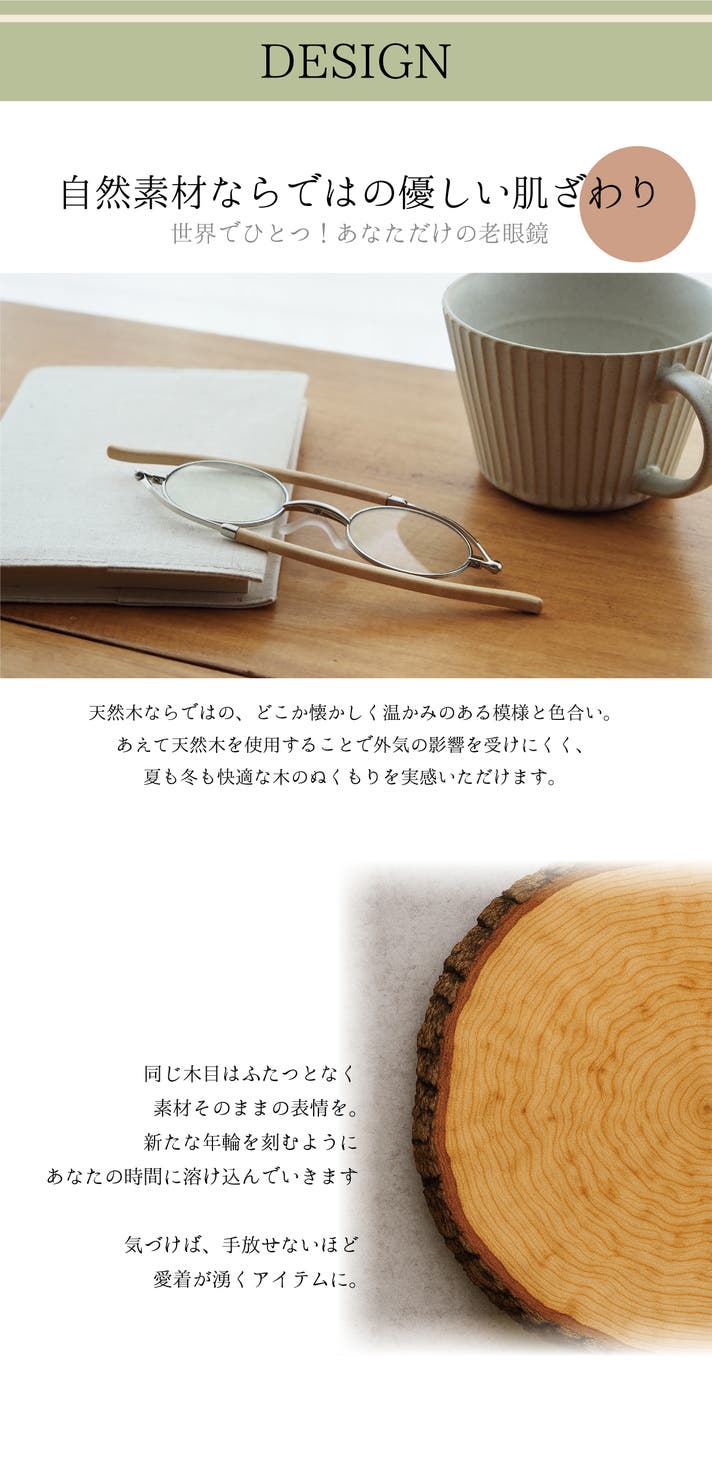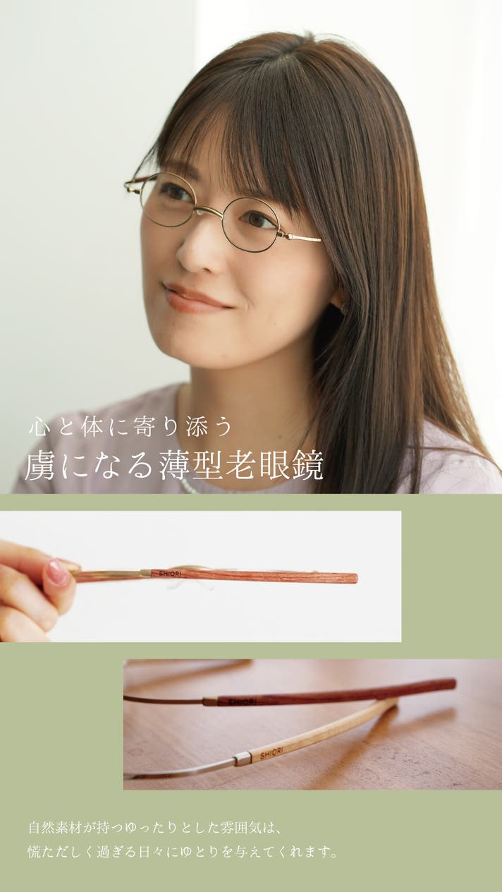 SHIORI 虜になる天然木の薄型老眼鏡 定価8,580円(税込)