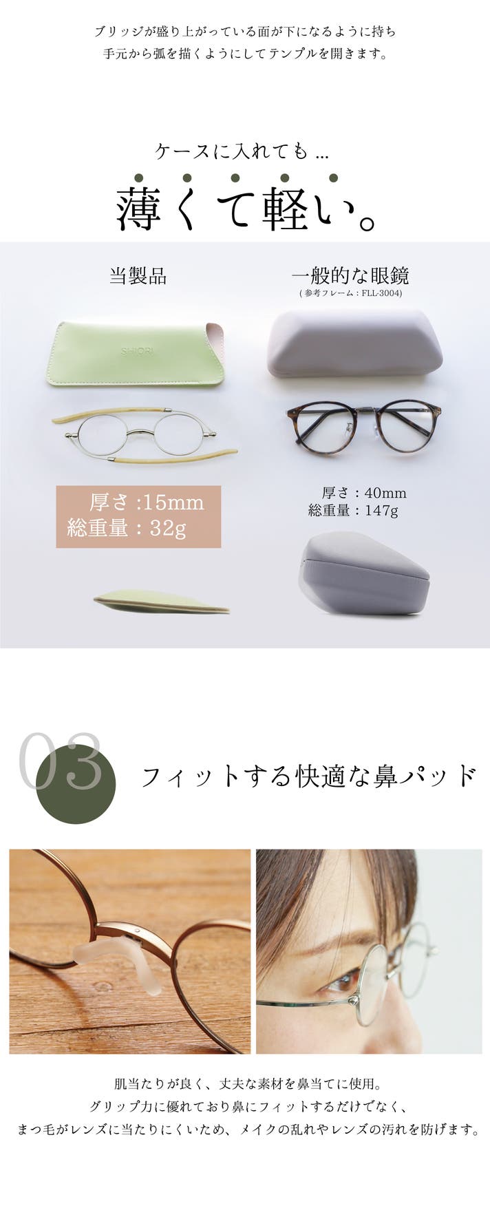 栞のようにフラットに折りたためる薄型老眼鏡。