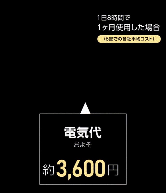 ※6畳用エアコン 1時間あたり電気代約15円×8時間×30日≒3,600円