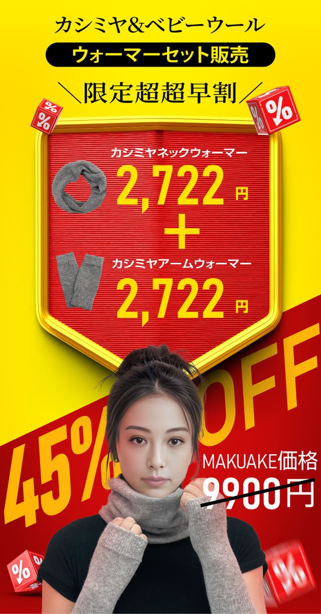「Makuake(マクアケ)」は、実行者の想いを応援購入によって実現するアタラシイものやサービスのプラットフォームです。このページは、 ファッションカテゴリの 「真冬でも【極暖ウォーマーシリーズ】で、在宅ワークもコストを抑えて経費を節約!!」プロジェクト詳細ページです。