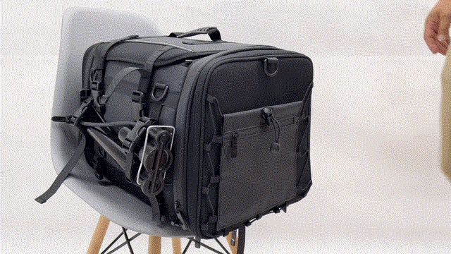 取付け用ストラップ、キャリーハンドル、ショルダーストラップ、ショルダーハーネスストラップがあり、使用シーンに応じて持ち運び方法を選べます!