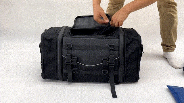 バイクで出かけるときに困るのが、荷物ですよね。リュックではたくさんの荷物を持ち運びにくく、身体の重心が取れず操作性が悪くなってしまいます。2~3泊の小旅行、アウトドアキャンプに行く時、ライダーの皆様はどんなバッグを選びますか?あれもこれも準備すると結構な収納量になりますよね。限られたタンデムスペースを上手に使い大容量収納で取り付けやすく、外した時の使用方法を考えた『バイクシートバッグ』を企画しました。ライダー歴50年の私自身の経験から得たこだわり企画をご紹介致します。
