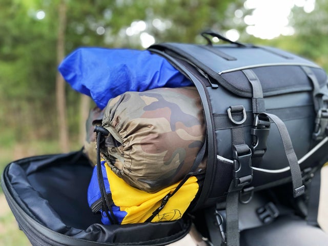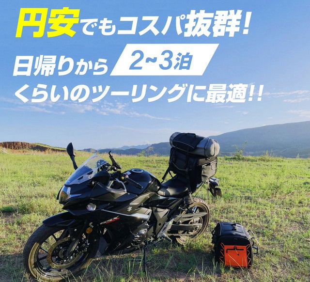 キャンプツーリングに行く時には色々なキャンプ道具を、積載量がほぼゼロなバイクに積載しなければならないので大容量バッグは必須!