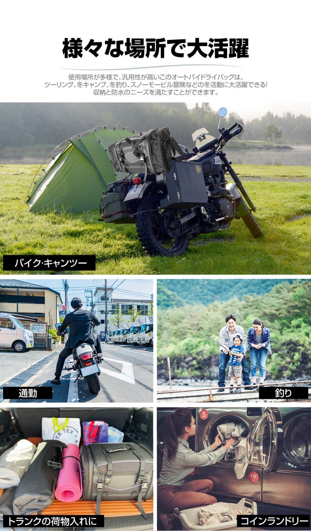 - 日帰りから2~3泊のキャンプツーリングに適した中型フィールドバイクシートバッグ・通勤も使える!