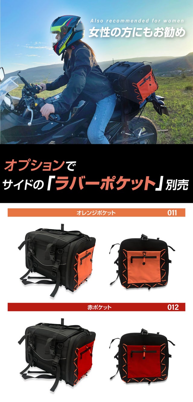 ここ最近女性のソロキャンプ増えてますよね!アパレル業界20年、バッグのどの部分で女性らしさを出せないかを考え、オプションリターンで両サイドポケットカラー、ゴムカラーが選べるように出来ました!女性ライダーのシートバッグお洒落したい!お任せください!実現出来ます!オプション詳細は後半でご紹介しております!