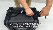 バックパックとして使うショルダーハーネスストラップを収納から出し入れ可能です!