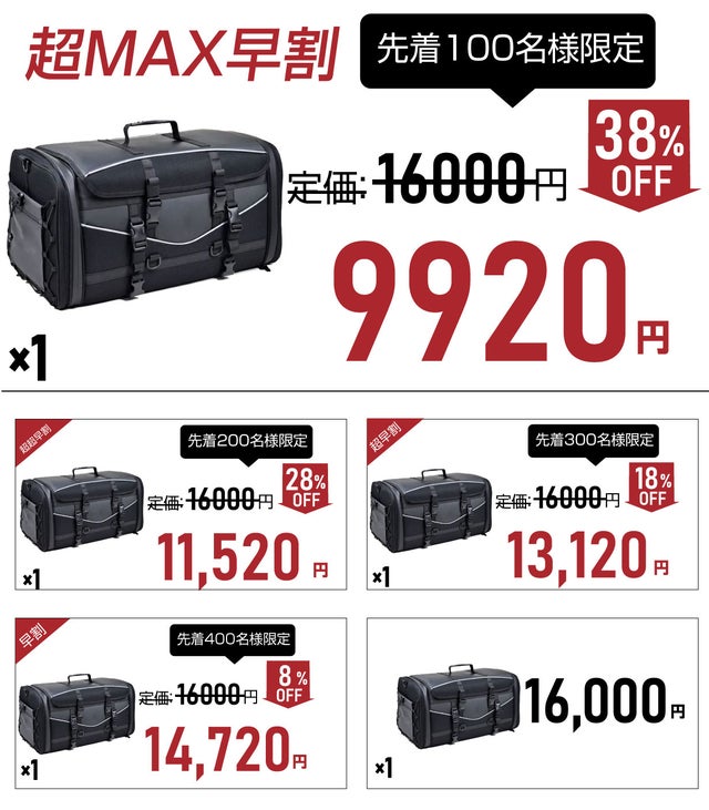 「Makuake(マクアケ)」は、実行者の想いを応援購入によって実現するアタラシイものやサービスのプラットフォームです。このページは、 プロダクトカテゴリの 「4WAY使い方自由自在・防水・拡張機能付き大容量シートバッグはツーリングの相棒!」プロジェクト詳細ページです。