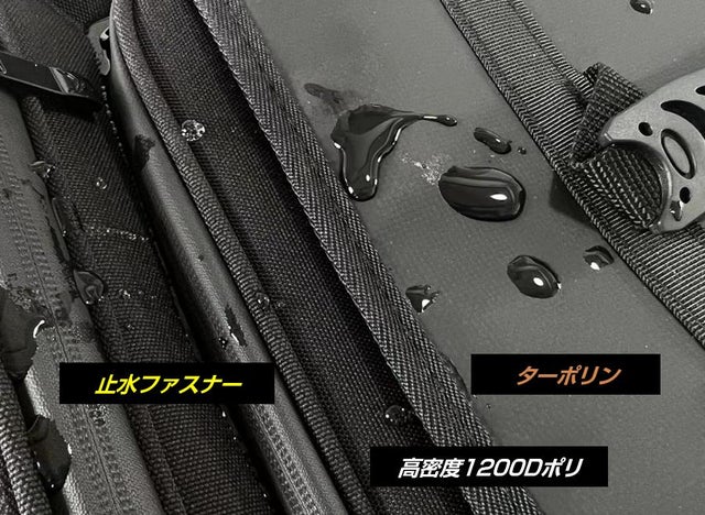 - 高品質で水に強い1200Dオックスフォードクロス+ターポリン+止水ファスナー+レインカバー付!