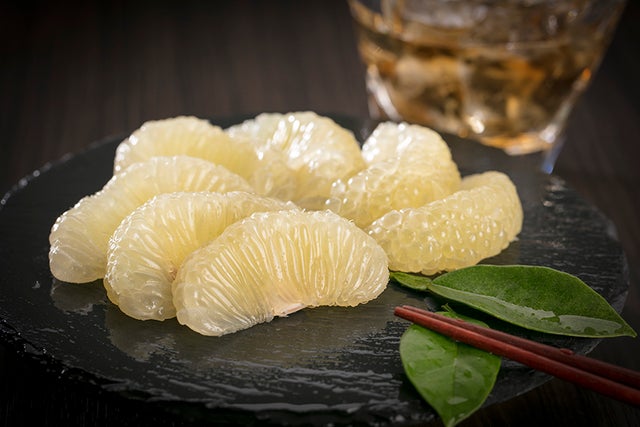 剥き実冷凍パックですので、全解凍して食べて頂くのはもちろんのこと、半解凍したシャーベット状態のサワーポメロを食べて頂いても美味しく召し上がることでできます。お刺身を食べるように「おさしみポメロ」をお箸でつまみながら美味しい芋焼酎を楽しんでみてはいかがでしょうか。