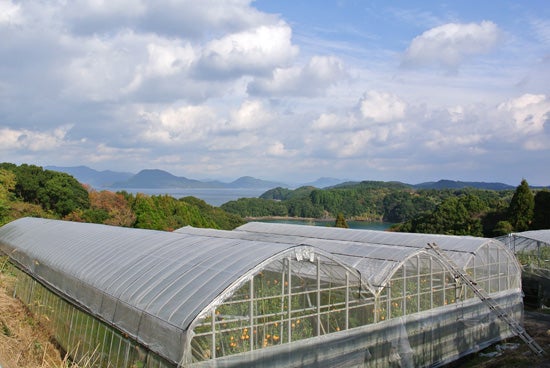 当園ハウス施設からの望む風光明媚な天草諸島の島々です。毎日この美しい風景を眺めながらの柑橘栽培はとても気持ちがいいものです。