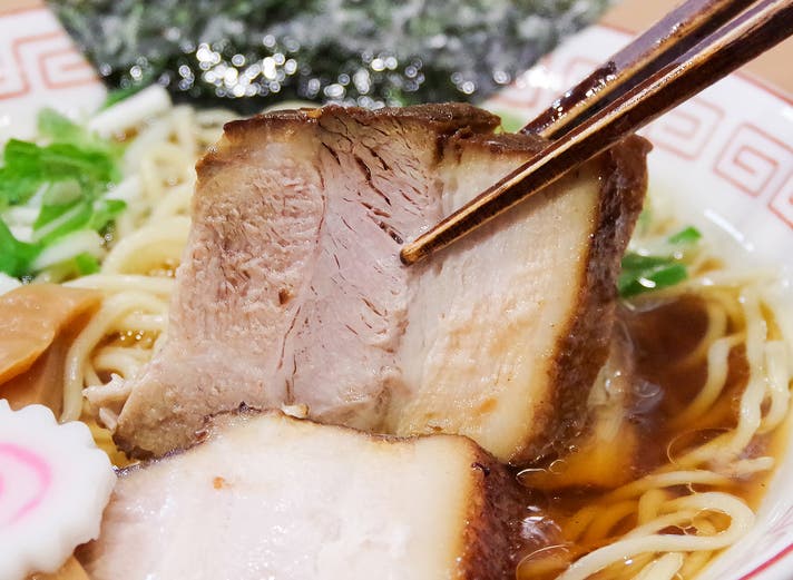 じっくり火入れした、しっとり柔らかなチャーシューを分厚くカット。