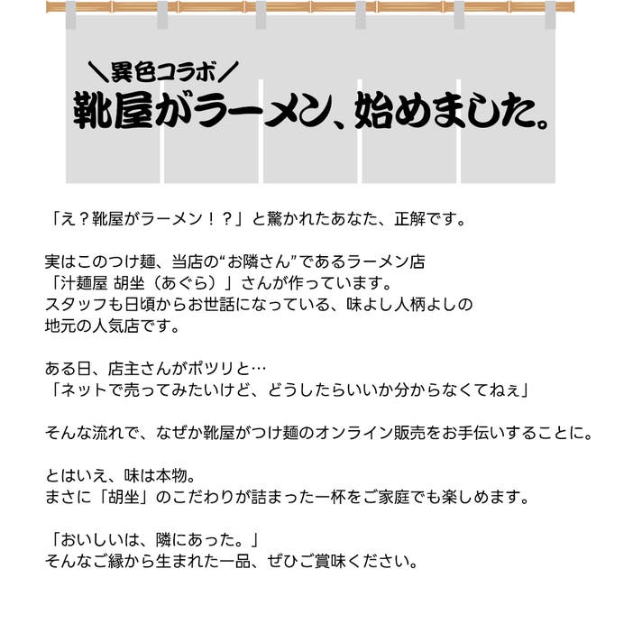 - 両国の名店「汁麺屋 胡坐」の“隠れた逸品”を初の通販化