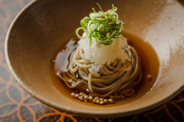 コース中盤には、毎朝店内で仕上げる手打ち蕎麦を。