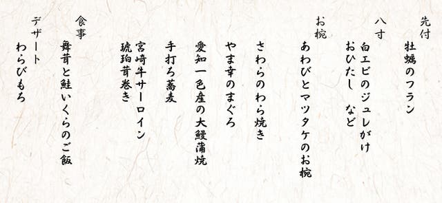 - 極上素材を惜しみなく使いながら驚きの品数が登場。特別に1.6万円のコースを1.2万円〜ご用意