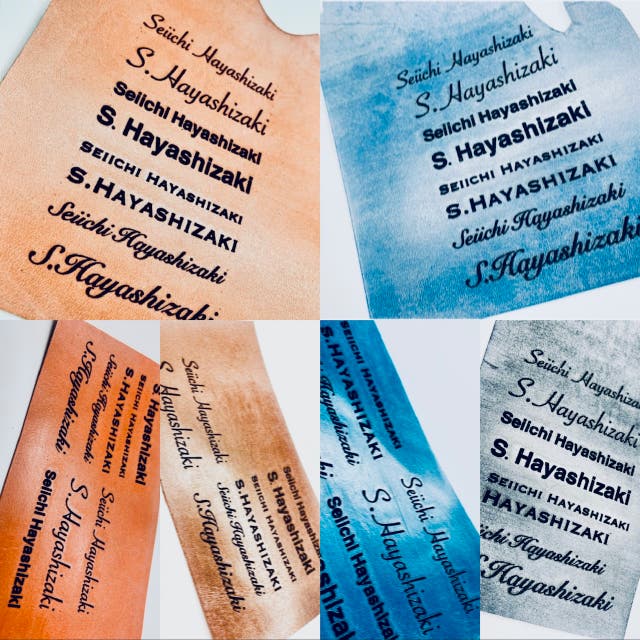 フルネームの名入れになると通常オーダーメイド扱いとなり、指定の文字を真鍮やスチール製で打ち込み用刻印をお作りして打ち込むやり方や、1文字1文字既存の刻印(大文字の組合せ)を組合せて打ち込むやり方が一般的になります。既存の刻印を使用しアルファベット2文字の名入れでも500〜1,000円程度、手間代として加算されてしまいます。