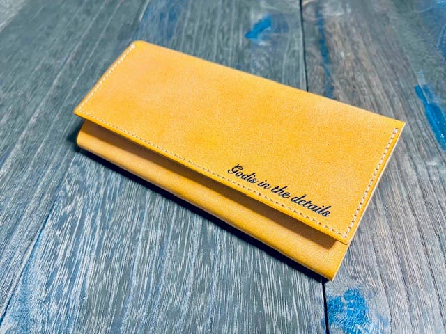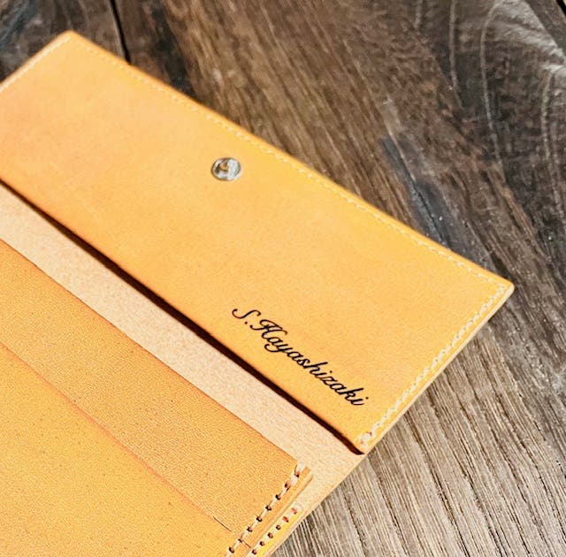 市場には様々なデザインや機能が付いたお財布がございますが、デザインが凝り過ぎるとメンズ仕様っぽくなり女性の方には持ちずらい傾向になりがちです。今回のテーマ『ジェンダーレス』は必須と考え毎日使うものなので、外観はあくまでシンプルに。「薄くて軽いコンパクトな長財布」をコンセプトに前回同様メッセージ名入れは標準仕様に。。。そして、シンプルながらも「デザイナー兼職人」として「パーソナル性が高い」一味違う長財布をデザインしてみました。最後までご一読頂けましたら励みになります。是非ご覧下さいませ。