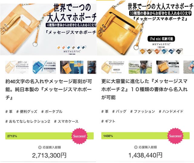 ちょうど1年前のこの時期、10周年感謝プロジェクトとしてメッセージ名入れを標準仕様にした「スマホポーチ」2種類のプロジェクト「メッセージスマホポーチ1」「メッセージスマホポーチ2」を公開し、皆様から応援や励ましのご感想など様々なご意見を頂きました。改めまして御礼申し上げます。