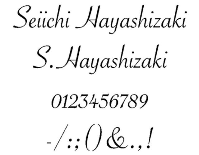 ■筆記体アルファベット(B)を使用した名入れイメージ