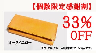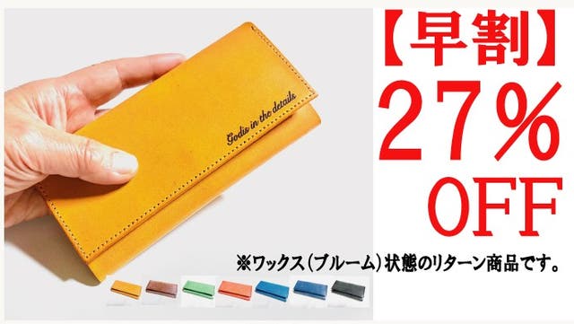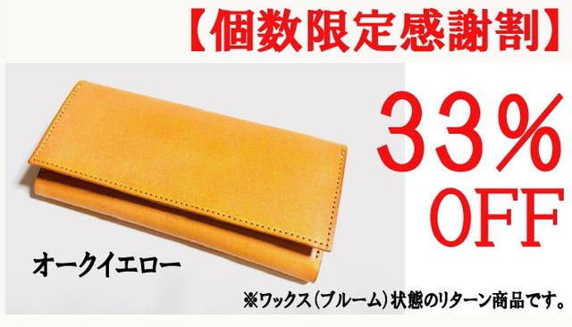 ■【個数限定感謝割】Shizaメッセージロングウォレット完成品1個(ワックス状態)「オークイエロー」限定25個33%OFF お届け予定 : 2024年7月下旬