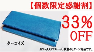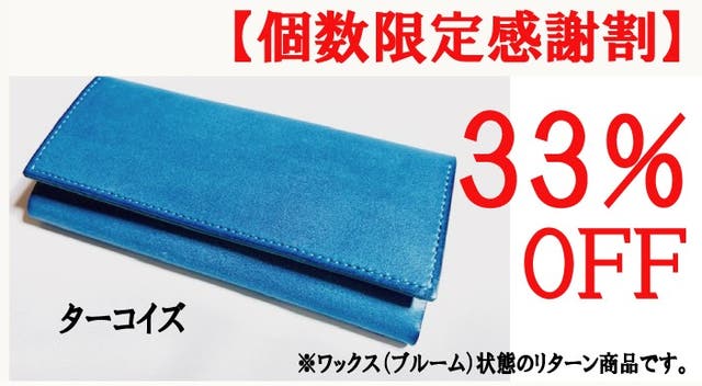 ■【個数限定感謝割】メッセージロングウォレット完成品1個(ワックス状態)「ターコイズ」限定25個 33%OFF お届け予定 : 2024年7月下旬
