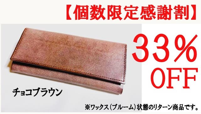 ■【個数限定感謝割】メッセージロングウォレット完成品1個(ワックス状態)「チョコブラウン」限定25個 33%OFF お届け予定 : 2024年7月下旬