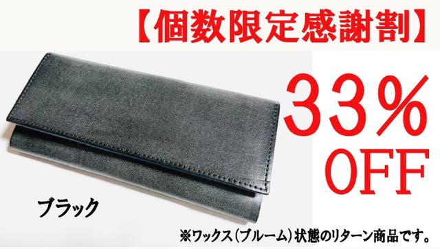 ■【個数限定感謝割】メッセージロングウォレット完成品1個(ワックス状態)「ブラック」限定25個 33%OFF お届け予定 : 2024年7月下旬