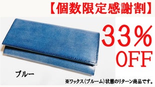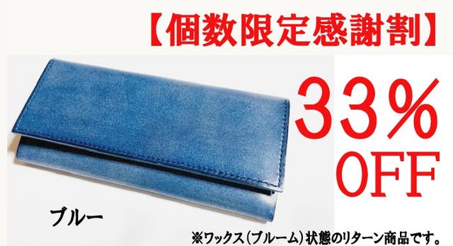 ■【個数限定感謝割】メッセージロングウォレット完成品1個(ワックス状態)「ブルー」限定25個 33%OFF お届け予定 : 2024年7月下旬