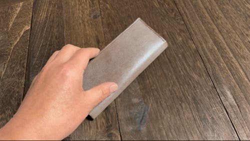 応援購入頂いた「メッセージ・ロングウォレット」の表面ワックス(ブルーム)を可能な限り疑似的な経年変化を再現させます。■一般販売価格 ¥1,000(税込・送料込)ところサポーター様限定40%OFFの¥600(税込)でご予約承ります。Shiza-メッセージロングウォレットご購入者様向け感謝価格になります。