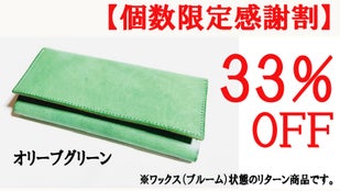 ■【個数限定感謝割】メッセージロングウォレット完成品1個(ワックス状態)「オリーブグリーン」限定25個 33%OFF お届け予定 : 2024年7月下旬